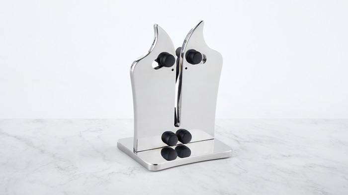 De diseño innovador y elegante, el Royal Prestige® Knife Sharpener te ayuda a mantener tus cuchillos listos para usar, permitiéndote afilar, alinear y pulir todo tipo de cuchillos, ya sean de hojas lisas o serradas. Su sistema de mariposa se ajusta automáticamente para adaptarse a los ángulos de la hoja.
