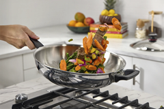 Descubra o prazer de cozinhar com estilo, tecnologia e versatilidade com a Royal Prestige® INNOVE™ Wok. Perfeito para saltear, fritar proteínas ou preparar legumes al dente. A Wok é produzida em aço inoxidável de grau cirúrgico e se destaca pelo design amplo, curvo e elegante. Compatível com fogões a gás, elétricos e de indução, garante uma distribuição de calor uniforme para receitas rápidas, saborosas e cheias de textura.