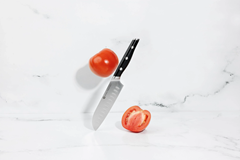 ¡El Royal Prestige® Santoku Knife 5" será tu mejor aliado en la cocina! Es un cuchillo originado en Japón con la calidad de acero de grado alemán que es ideal para cortar en rodajas, cubos y más. Cuentan con muescas en la cuchilla para evitar que se peguen los ingredientes, facilitando el corte rápido con un mango rediseñado que favorece un agarre profesional y reduce la fatiga. En pocas palabras, lo mejor de lo mejor en un tamaño perfecto de 5".