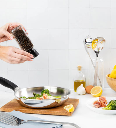 Nuestras ollas y sartenes te ofrecen calidad premium para tu cocina, gracias a que están fabricados con acero inoxidable grado quirúrgico.