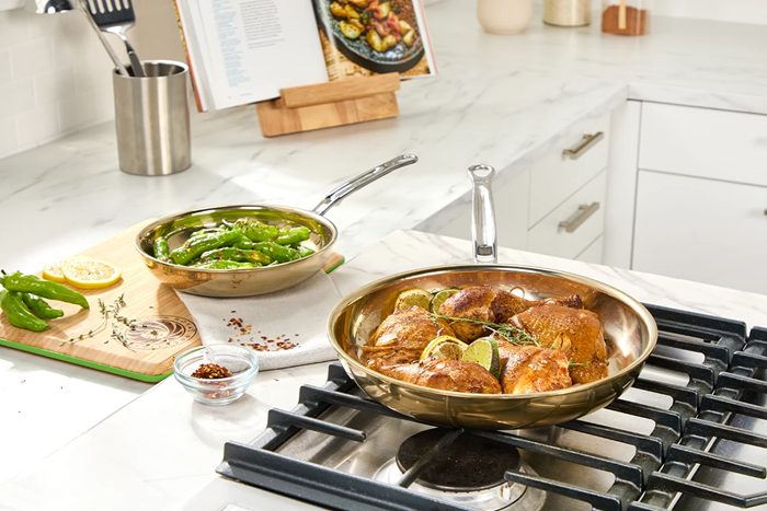 Complementa tus Sistemas de Cocina de Royal Prestige® con un acabado dorado.